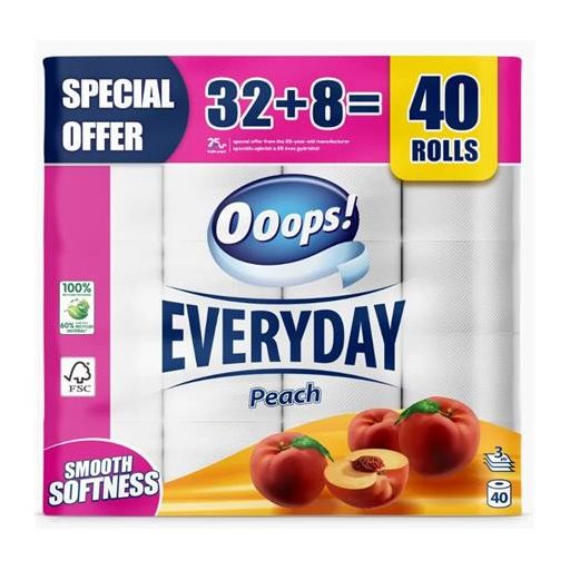 Toalettpapír, 3 rétegű, kistekercses, 32+8 tekercs, OOOPS "Everyday", barack