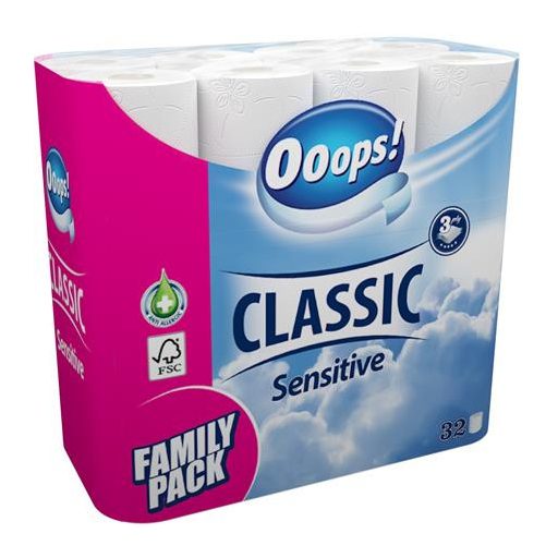Toalettpapír, 3 rétegű, kistekercses, 32 tekercs, OOOPS "Classic", sensitive
