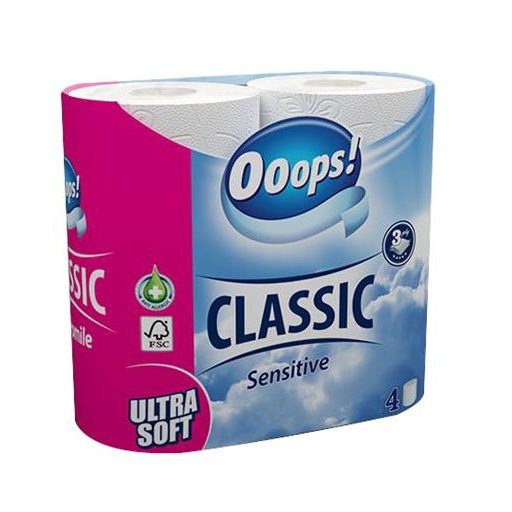 Toalettpapír, 3 rétegű, kistekercses, 4 tekercs, OOOPS "Classic", sensitive