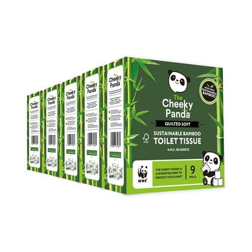 Toalettpapír, bambusz, 3 rétegű, kistekercses, 9 tekercs, CHEEKY PANDA, fehér