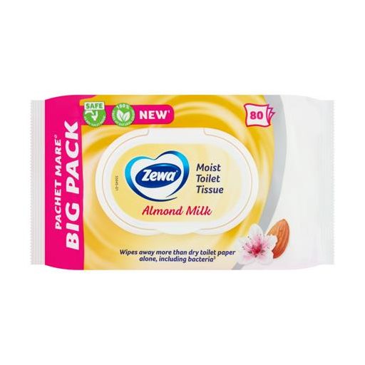 Toalettpapír, nedves, 80db, ZEWA, mandulatej