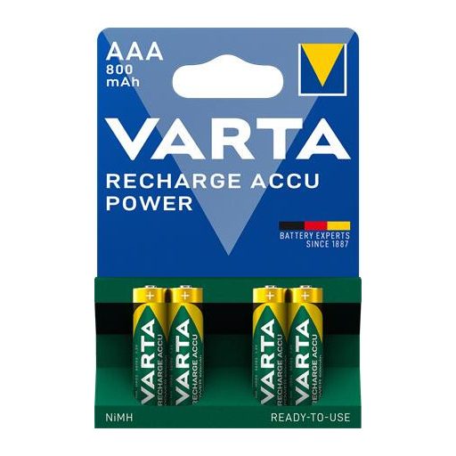 Tölthető elem, AAA mikro, 4x800 mAh, előtöltött, VARTA "Power"