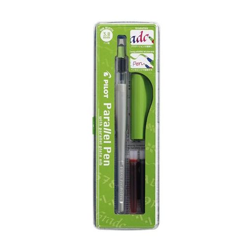 Töltőtoll, 0,5-3,8 mm, zöld kupak, PILOT "Parallel Pen"