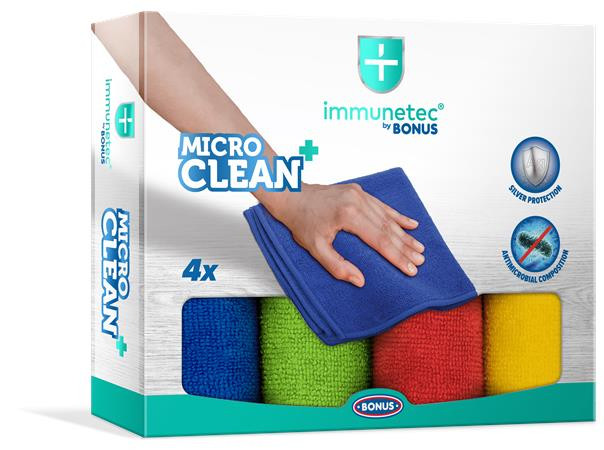 Törlőkendő, mikroszálas, 4 db, BONUS "MicroCLEAN Plus Immunetec"