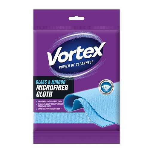 Törlőkendő, mikroszálas, üveg és tükör felületre, 35x35 cm, 1 db, VORTEX, kék