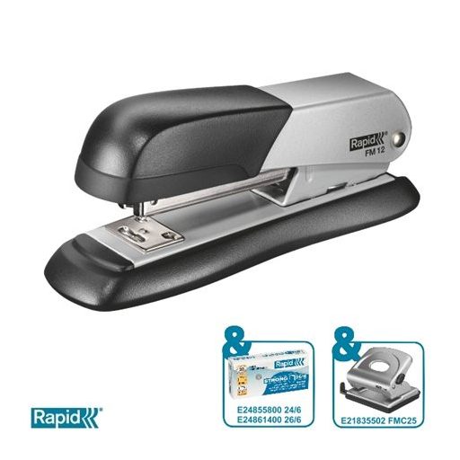 Tűzőgép, 24/6, 26/6, 25 lap, RAPID "FM12", ezüst