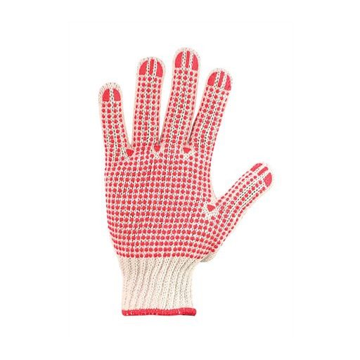 Védőkesztyű, kötött, csúszásgátló pöttyökkel, 7 méret, fehér/piros