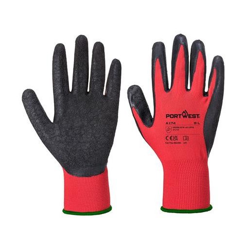 Védőkesztyű, latex, L méret "Flex Grip", piros-fekete