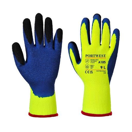 Védőkesztyű, latex, XL méret "Duo-Therm", sárga-kék