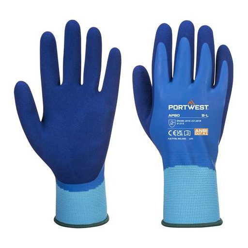 Védőkesztyű, latex, latexhab, tenyerén mártott, S méret "Liquid Pro", kék