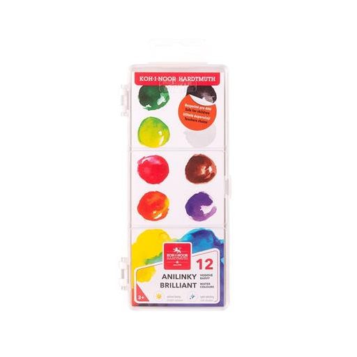 Vízfesték, 12 darabos, 22,5 mm, KOH-I-NOOR "Anilinky Brilliant"