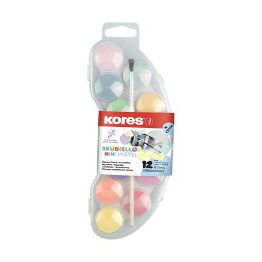 Vízfesték, 12 darabos, 25 mm, ecsettel, KORES "Akuarellos Mini", pasztell színek