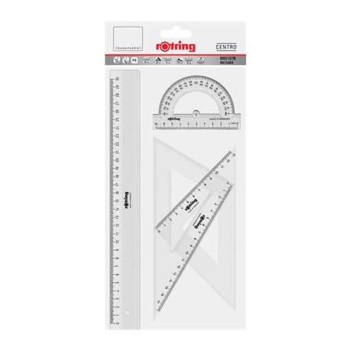 Vonalzó készlet, műanyag, ROTRING, víztiszta