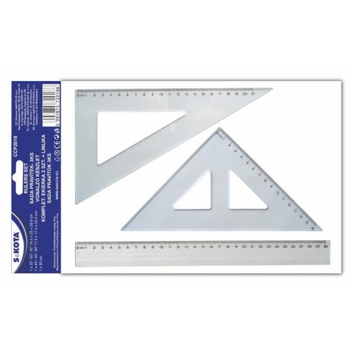 Vonalzókészlet, műanyag, 3 darabos, SAKOTA