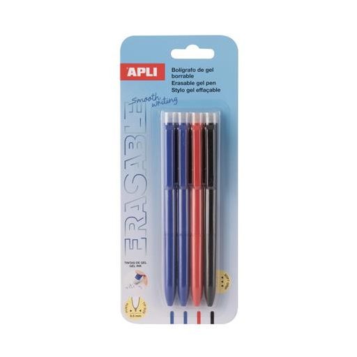 Zseléstoll, 0,5 mm, nyomógombos, radírozható, APLI "Erasable", vegyes színek