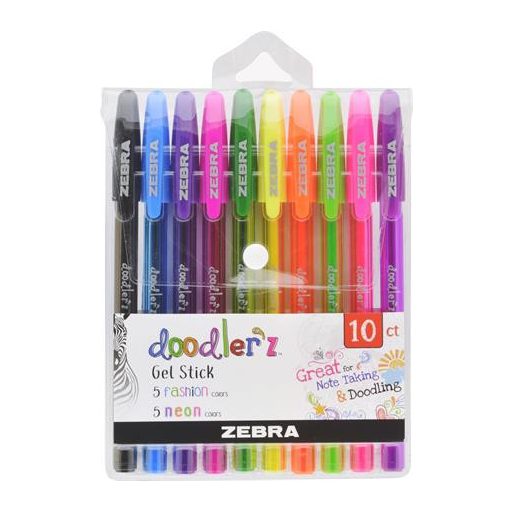 Zseléstoll készlet, 0,33 mm, kupakos, ZEBRA "Doodler'z Neon & Fashion", 10 vegyes szín