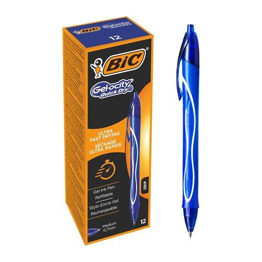 Zseléstoll, 0,3 mm, nyomógombos, BIC "Gel-ocity Quick Dry", kék