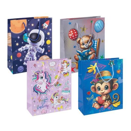 Ajándéktáska, zsinórfüles, 25x30x10 cm, DONAU "Home", vegyes gyermek minta