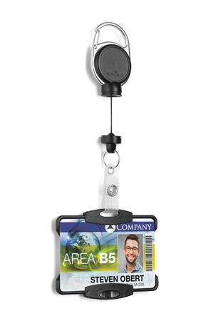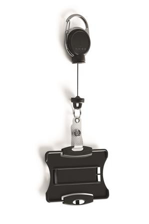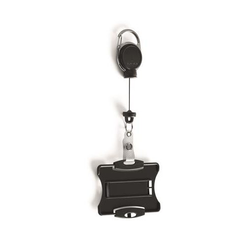 Biztonságikártya-tartó kihúzható mágneses karabínerrel.