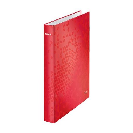 Gyűrűs könyv, 2 gyűrű, D alakú, 40 mm, A4 Maxi, karton, LEITZ "Wow", piros