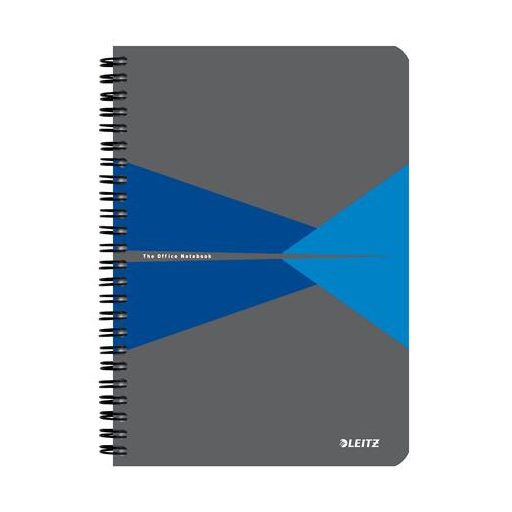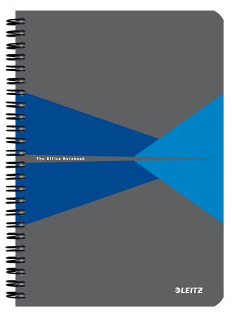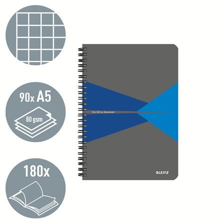 Spirálfüzet, A5, kockás, 90 lap, laminált karton borító, LEITZ "Office", szürke-kék