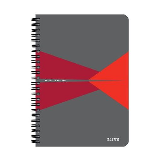 Spirálfüzet, A5, vonalas, 90 lap, laminált karton borító, LEITZ "Office", szürke-piros