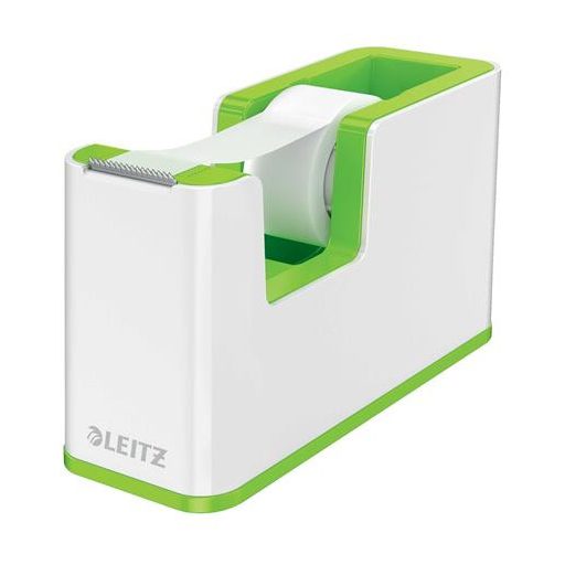 Ragasztószalag-adagoló, asztali, feltöltött, LEITZ "Wow", fehér-zöld