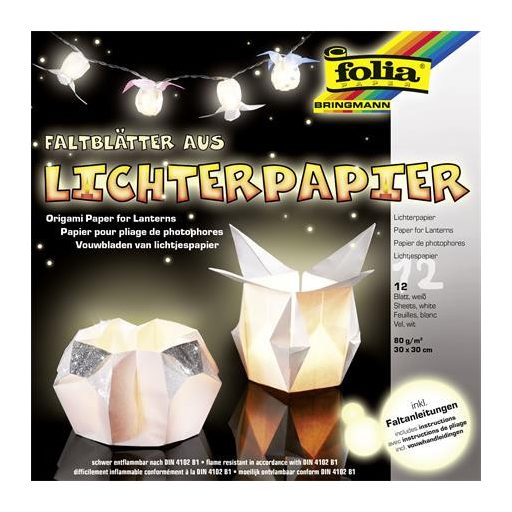 Origami papír, lámpáshoz, 30x30 cm, 80 g, 12 lap, FOLIA, fehér