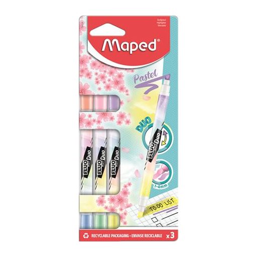 Szövegkiemelő készlet, 1-5 mm, kétvégű, MAPED "Fluo Peps Duo", 6 különböző pasztell szín