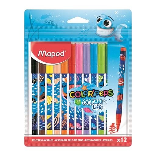 Filctoll készlet, 2 mm, kimosható, MAPED "Color'Peps Ocean Life", 12 különböző szín