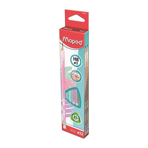 Grafitceruza radírral, HB, háromszögletű, MAPED "Black'Peps Glitter Deco", vegyes pasztell színek