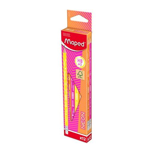 Grafitceruza radírral, HB, háromszögletű, MAPED "Black'Peps Neon", vegyes színek