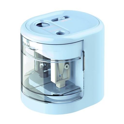 Hegyező, kétlyukú, asztali, elemes, USB töltővel, RAPESCO"PS12-USB", világoskék