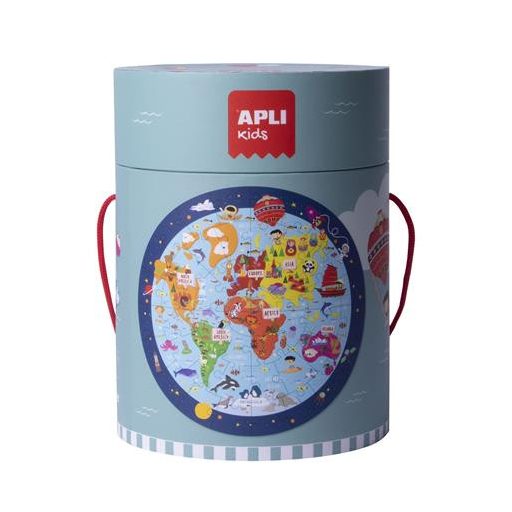 Puzzle, kör alakú, 48 darabos, APLI Kids "Circular Puzzle", világtérkép