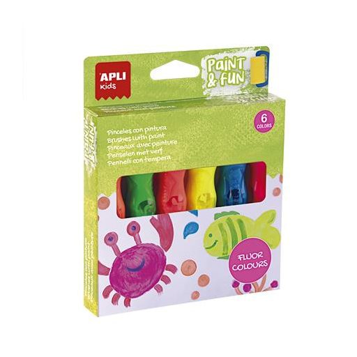 Tempera készlet, ecsetvégű tubusban, APLI Kids "Paint&Fun", 6 különböző neon szín