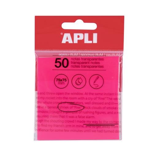 Öntapadó jegyzettömb, átlátszó, vízálló, 75x75 mm, 50 lap, APLI, rózsaszín