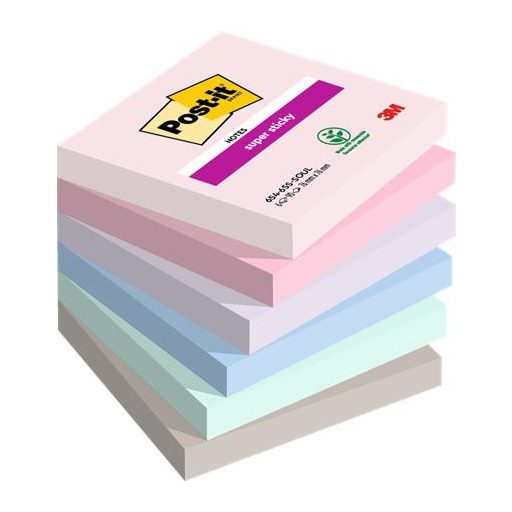 Öntapadó jegyzettömb, 76x76 mm, 6x90 lap, 3M POSTIT "Super Sticky Soulful", vegyes színek