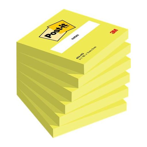 Öntapadó jegyzettömb, 76x76 mm, 6x100 lap, 3M POSTIT, neonzöld