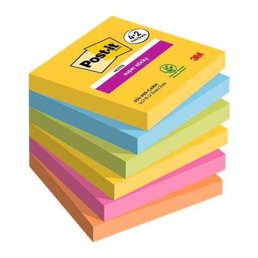 Öntapadó jegyzettömb, 76x76 mm, 6x90 lap, 3M POSTIT "Super Sticky", "Carnival", vegyes színek