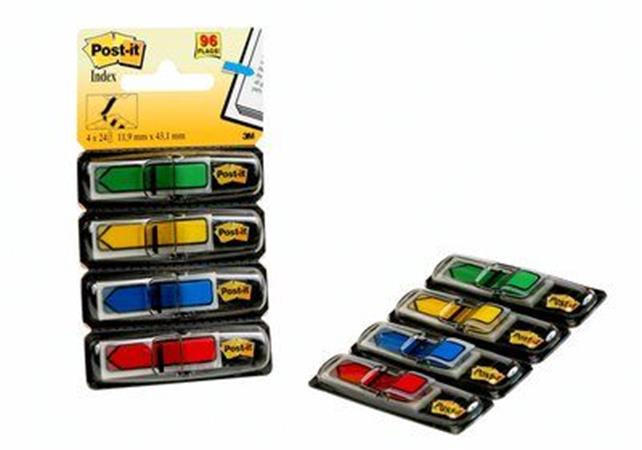 Jelölőcímke, műanyag, 4x24 lap, 11,9x43,2 mm, nyíl, 3M POSTIT, vegyes