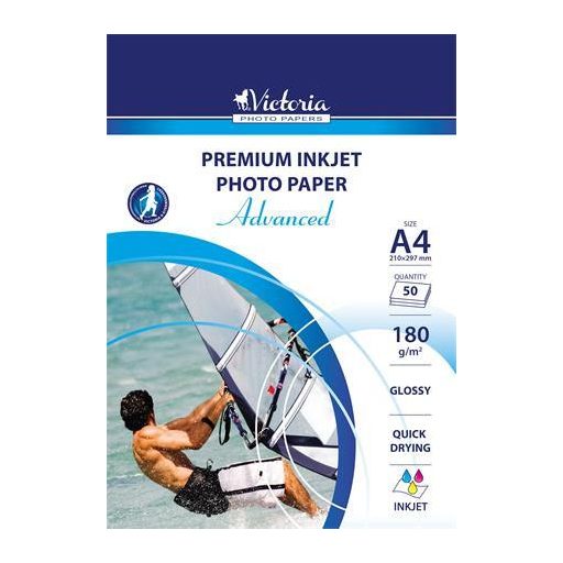Fotópapír, tintasugaras, A4, 180 g, fényes, VICTORIA PAPER "Advanced"