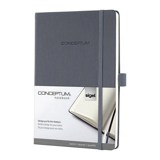 Jegyzetfüzet, exkluzív, A5, kockás, 97 lap, keményfedeles, SIGEL "Conceptum", sötétszürke
