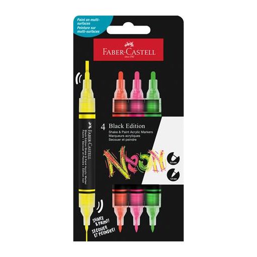 Dekormarker készlet, 1,0/3,0 mm, kétvégű, akril, FABER-CASTELL "Shake&Paint", 4 különböző neon szín