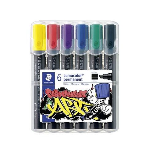 Alkoholos marker készlet, 2-5 mm, vágott, STAEDTLER "Lumocolor® 350", 6 különböző szín