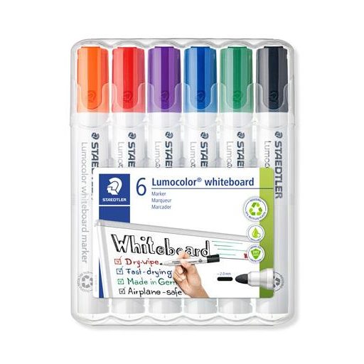 Táblamarker készlet, 2 mm, kúpos, STAEDTLER "Lumocolor® 351", 6 különböző szín