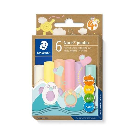 Modellező gyurma készlet, STAEDTLER "Noris® jumbo 842", 6 különböző pasztell szín