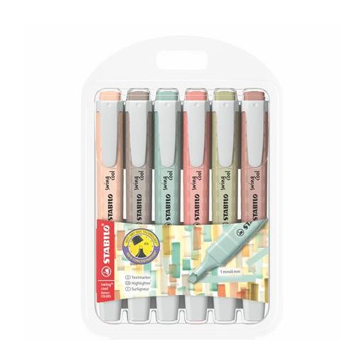 Szövegkiemelő készlet, 1-4 mm, STABILO "Swing cool NatureCOLORS", 6 különböző szín