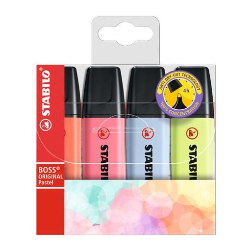 Szövegkiemelő készlet, 2-5 mm, STABILO "BOSS original Pastel3", 4 különböző szín
