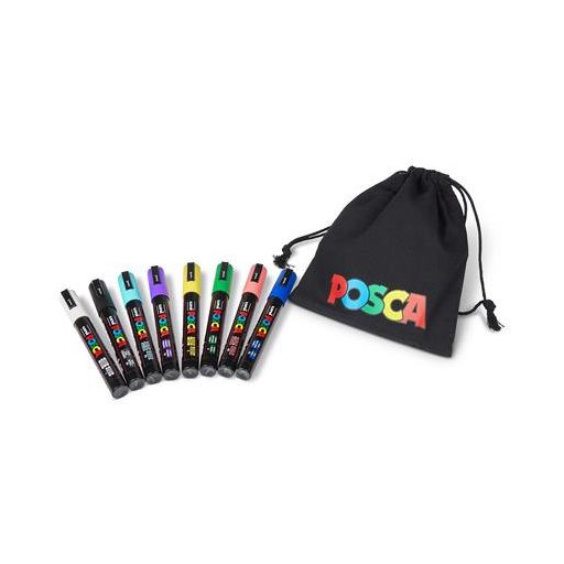 Dekormarker készlet, 1,8-2,5 mm, UNI "Posca PC-5M", 8 különböző szín, tartóval