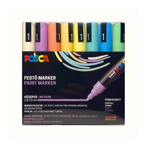 Dekormarker készlet, 1,8-2,5 mm, UNI "Posca PC-5M", 8 különböző pasztell szín
